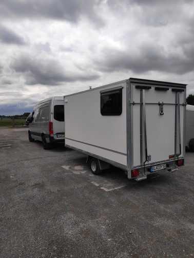 Da ich mit einem Sprinter und Anhänger unterwegs bin, benötige ich eine ruhige Stellfläche von mindestens 100 qm um vernüntig zu arbeiten.